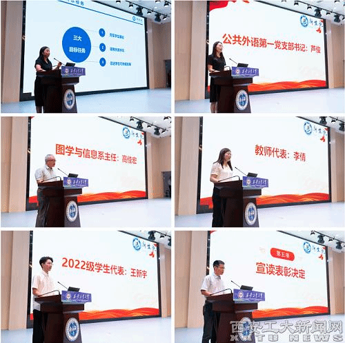 会议第一阶段,大家共同观看了工作总结视频,回顾了新生院2022学年的人才培养工作历程。新生院院长刘改琳从新生院基本情况、党建工作、教学工作、学生教育管理工作、取得的成绩、存在的问题和不足、下一步工作思路和举措等七个方面进行汇报,全面总结了过去一年中人才培养工作各项成效。公共外语第一党支部书记芦俊、图学与信息系主任高佳宏、数学系教师代表李倩、2022级学生代表王新宇分别进行交流发言。新生院党委书记姬洪波宣读学院2022年学风建设工作表彰决定,校领导为获奖代表颁发了荣誉证书。