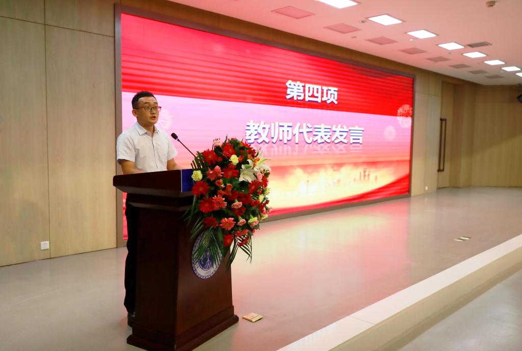表彰后,获奖教师代表,机电工程学院张耿发言。他代表青年教师对全校领导、同事送上节日祝福和感谢,号召年轻教师做有温度、有宽度、有高度的人,秉持“西安工大精神”,落实立德树人根本任务,为好博网页版更加美好的明天而共同努力。