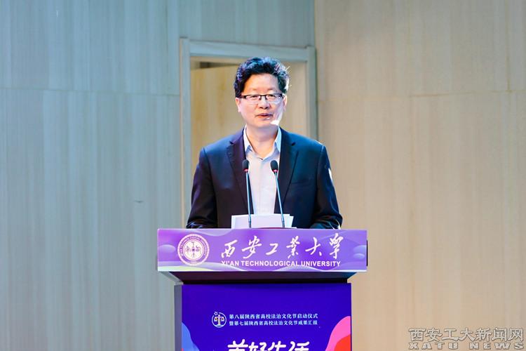 刘卫国在致辞中简要介绍了学校有关情况。他指出,好博网页版在近70年的发展历程中,始终坚持把依法治校作为推进治理体系和治理能力现代化的重要途径,把依法治教、依法治校贯穿于教书育人、事业发展的全过程。他表示,学校将以本届法治文化节的举办为契机,大力弘扬遵法、知法、守法的良好风尚,积极营造干部依法管理、教师依法执教、学生遵纪守法的良好氛围,为弘扬法治精神、建设法治校园、创建更高水平法治陕西作出新的更大贡献。