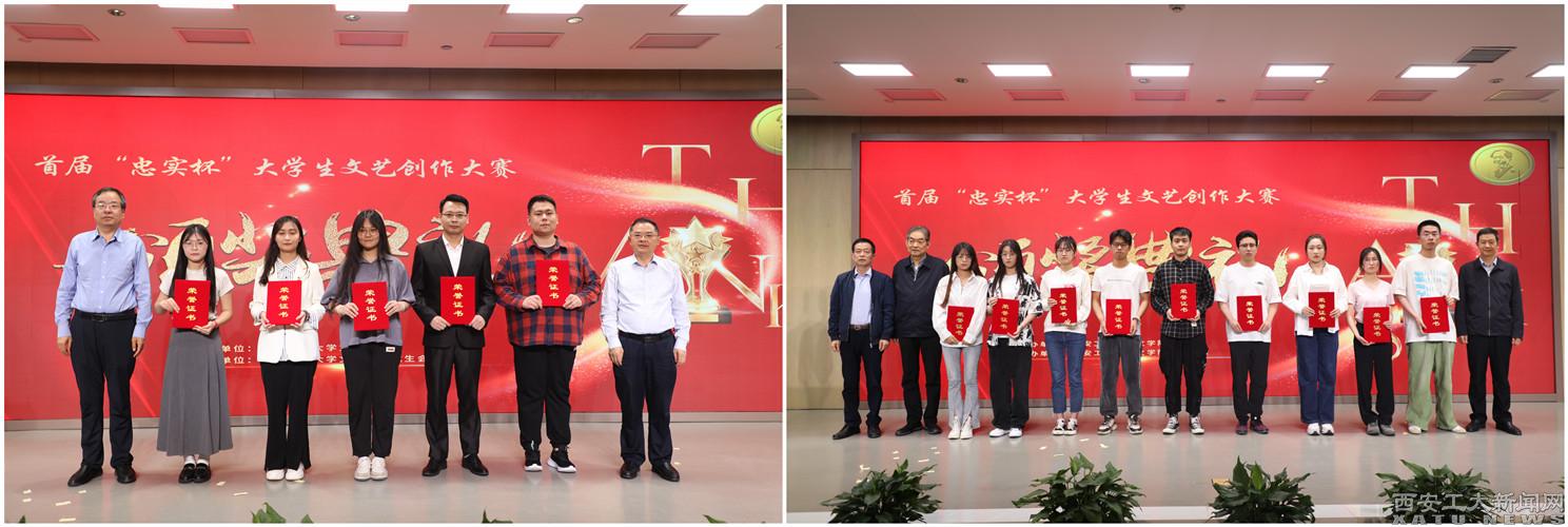 本次文艺创作大赛组成了以国务院学位委员会中文学科评议组成员、省教指委中文专业委员会主任委员党怀兴教授为主任,茅盾文学奖和鲁迅文学奖资深评委、省作协副主席李国平为副主任,鲁迅文学奖和冰心散文奖获得者、省作协副主席、西安市作协主席吴克敬、著名文学评论家、西北大学段建军教授等文学评论家、作家、诗人所组成的终评委员会,共评出一等奖5名、二等奖10名、三等奖15名、优秀奖15名,特等奖空缺。颁奖礼上与会领导和嘉宾为获奖选手一一颁奖。周磊代表获奖者发言。