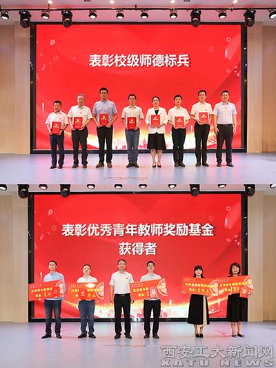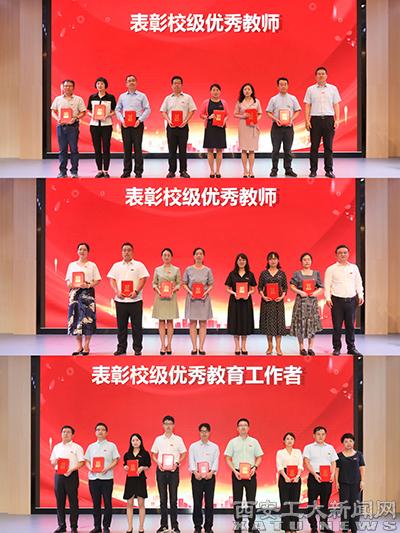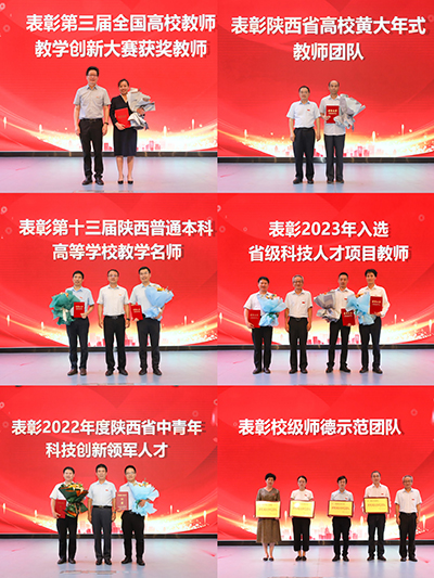 百年大计,教育为本;教育大计,教师为本。会上分别表彰了第三届全国高校教师教学创新大赛获奖教师、第二批陕西省高校黄大年式教师团队、第十三届陕西普通本科高等学校教学名师、2023年入选省级科技人才项目教师、2022年度陕西省中青年科技创新领军人才、2023年度校级师德建设示范团队和师德标兵、2023年度好博网页版优秀青年教师奖励基金获得者、2023年度校优秀教师和优秀教育工作者代表,与会校领导为获奖集体和个人代表颁发荣誉证书。