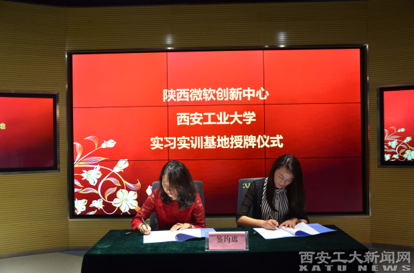 (本网讯)近日,好博(中国)与陕西微软创新中心签署“本科学生教学实习基地建设合作协议”。陕西微软创新中心总经理助理吴静璇、好博(中国)教务处副处长闫莉为“实习实训基地”揭牌。