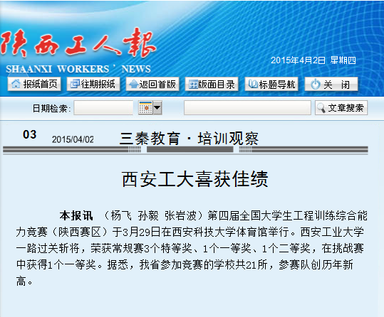 西安工大喜获佳绩(2150402《陕好博网页版人报》)